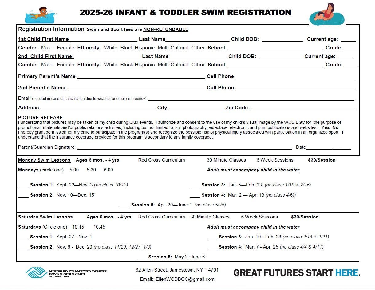 2024-25 Infant/Toddler Swim form is below.